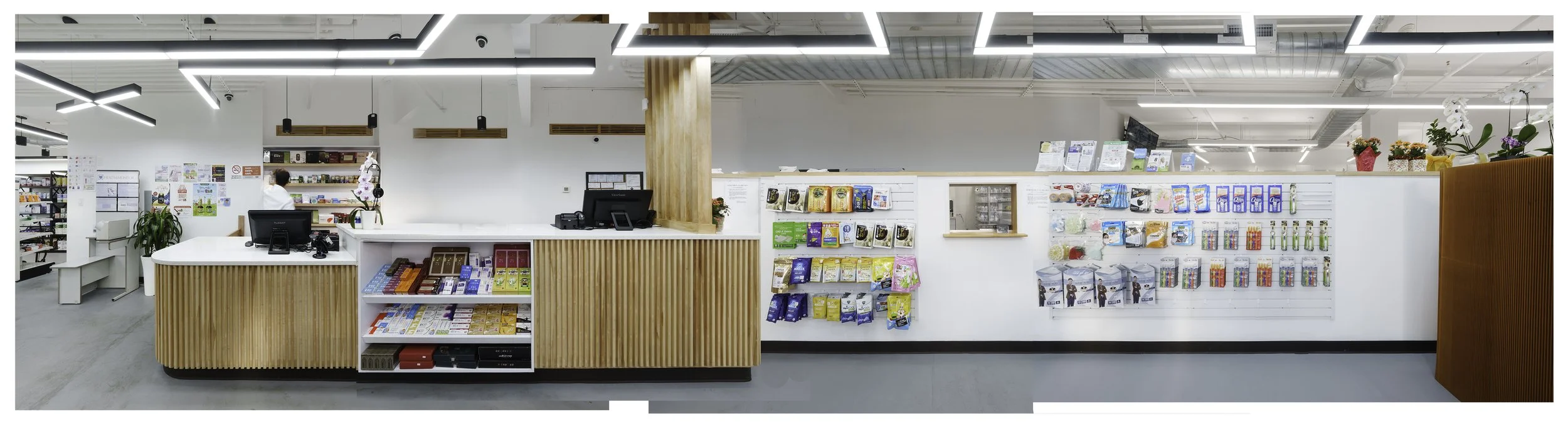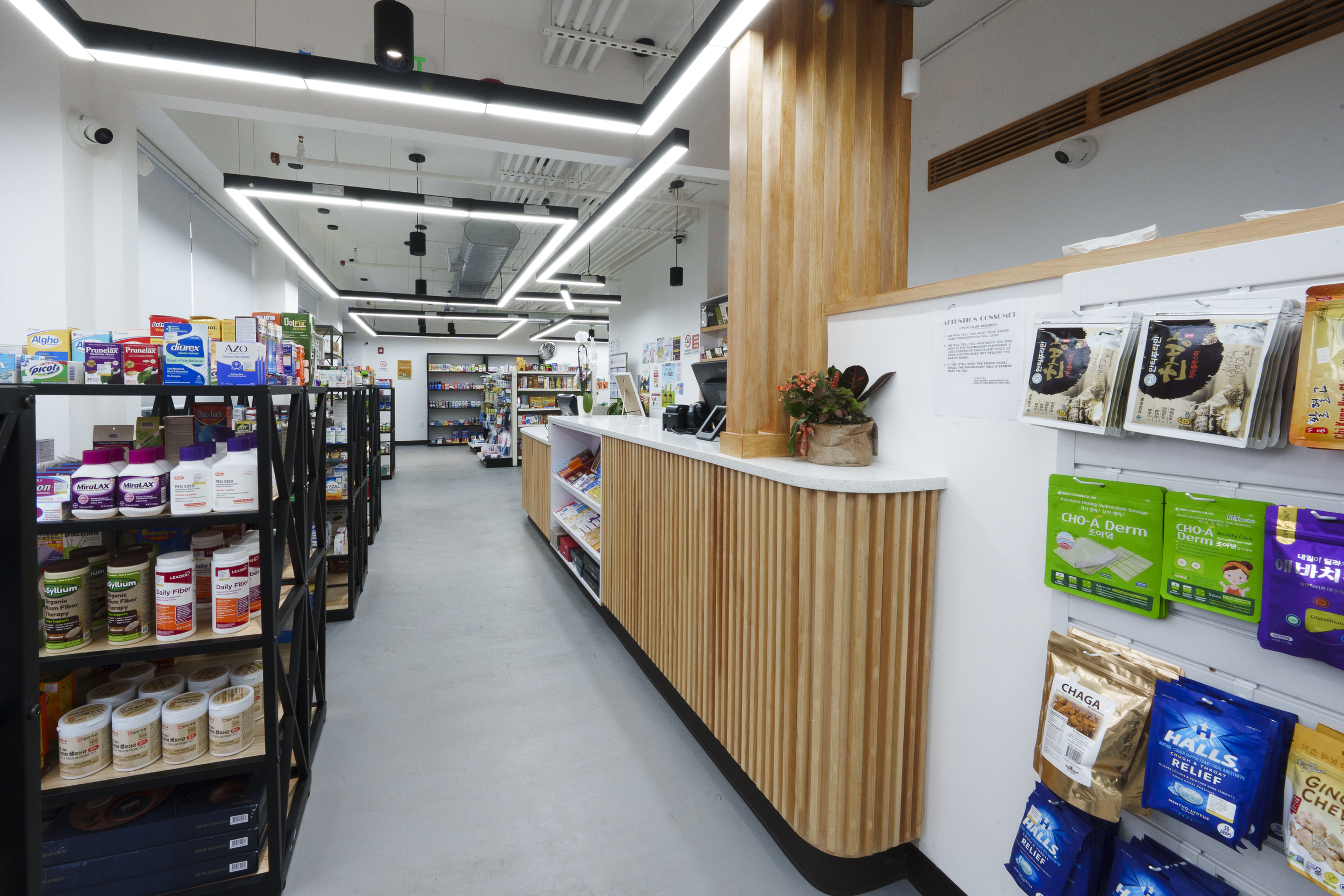 Architecture meets community care at Do’s Pharmacy. Tasked with combining two retail suites within a mixed-use framework, the project leverages smart millwork and a neutral material palette to prove that affordable design can also be aspirational. While the interior remains serene and neutral, the storefront—designed in collaboration with Jackie Oh—injects a sense of joy into the North Brunswick streetscape. More than just signage, these whimsical graphics act as a light filter, diffusing the sun into a kaleidoscopic play of color that mirrors the friendly, vibrant service found within.